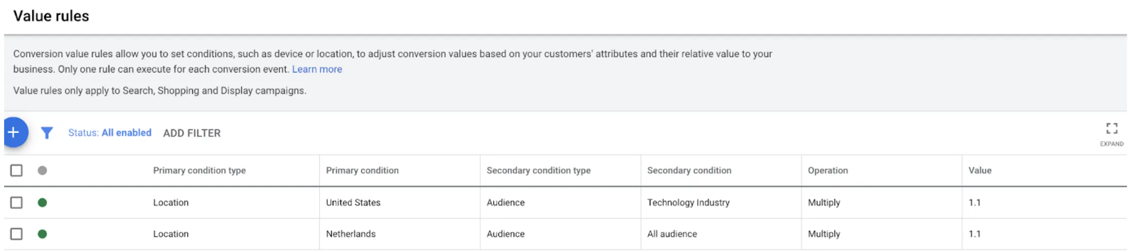 Google’s Value Rules are a great feature for advertisers who want more control over automated bidding but who don’t want to set up the more complex offline conversions or value adjustment systems.