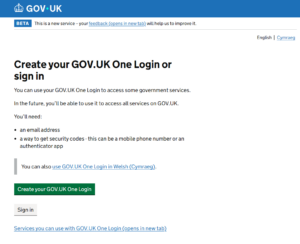 2. You will need to create a single sign in to the GOV.UK to complete the registration (unless you already have a One Login set up, in which case you will be able to log in at the same link).